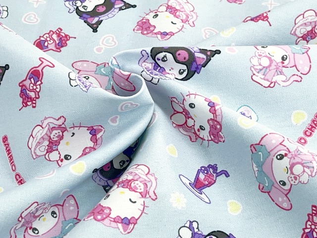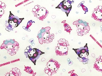 ポイント10倍! オックスプリント生地 サンリオキャラクターズ ねこみみメイドカフェ